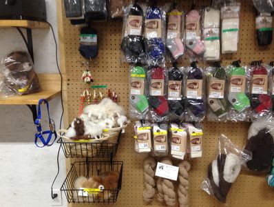 In our store, we proudly host a collection of socks, hats, scarves, leggings, plushies, pens, keychains and more made from alpaca fleece. We even have yarn available for purchase made from our own herd!